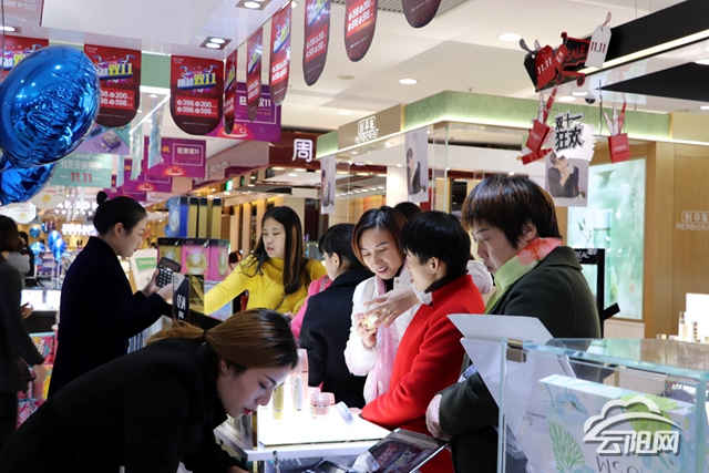 隨后,記者來到云江大道建委旁幾家護(hù)膚品店,看到不少店鋪門口張貼著“雙十一”活動(dòng)海報(bào),不少消費(fèi)者正在試用產(chǎn)品,生意格外火爆。“今天一直很忙,平時(shí)一天銷售額只有1000余元,今天上升了6倍,賣出套盒20余件,加上單品,銷售額可達(dá)6000多元。”該店負(fù)責(zé)人告訴記者。