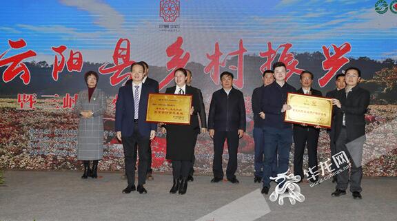 廈門航空等合作企業(yè)在研討會上向三峽陽菊授牌。 首席記者 趙鐵琥 攝
