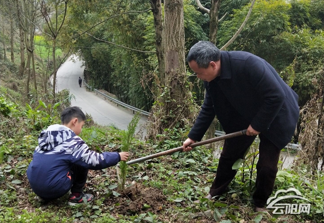 云陽網訊(通訊員 吳方莉 龍宜)3月12日,寶坪小學組織學校200余名師生在學校外山坡、公路兩旁開展“我為祖國植10棵樹”全民義務植樹活動。