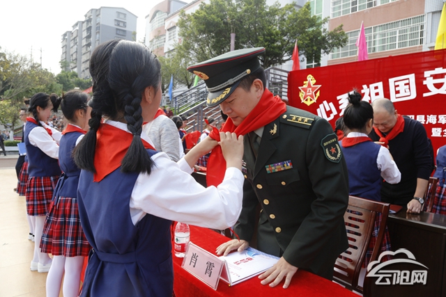 副縣長劉新民在致辭中說,海軍南海艦隊始終情系云陽教育,心系山區(qū)孩子,多次來到雙江小學走訪慰問,2017年,南海艦隊為學校援建了“國防教育室”。同時,雙江小學圍繞“國防教育”的辦學特色,打造系列海軍特色文化,開展系列國防特色活動。她要求,雙江小學要永遠銘記南海艦隊官兵的深情厚誼,辦好人民滿意教育,回報南海艦隊全體官兵的關愛和支持。她希望大家要增強憂患意識,做到居安思危,堅持不懈地加強國防建設,做好國防教育,提高國防素質。要深刻認識開展全民國防教育活動的重要性,切實增強做好國防教育工作的使命感和責任感,營造全民關心支持國防建設的濃厚氛圍。