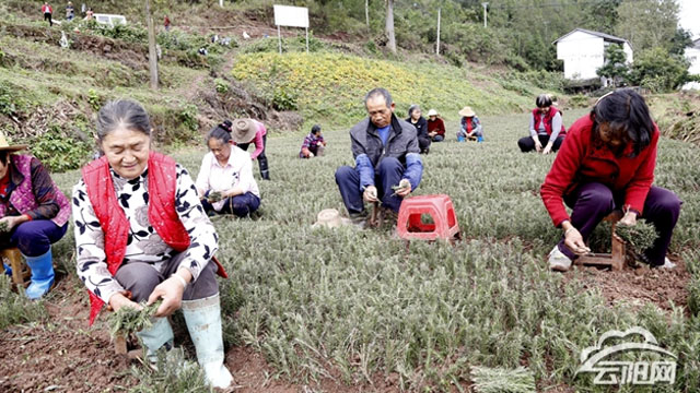 盤龍街道革嶺村村民們正在栽植迷迭香