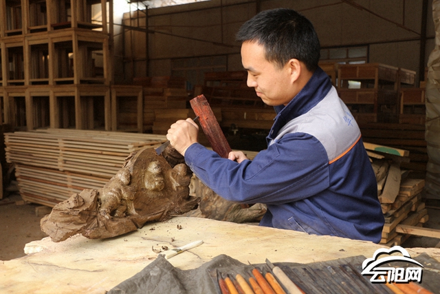 迎客松、駿馬奔騰、關(guān)二爺、觀音坐蓮……走進(jìn)車間,一件件制作精美、形象逼真的木雕作品映入眼簾,讓人看得驚嘆連連。