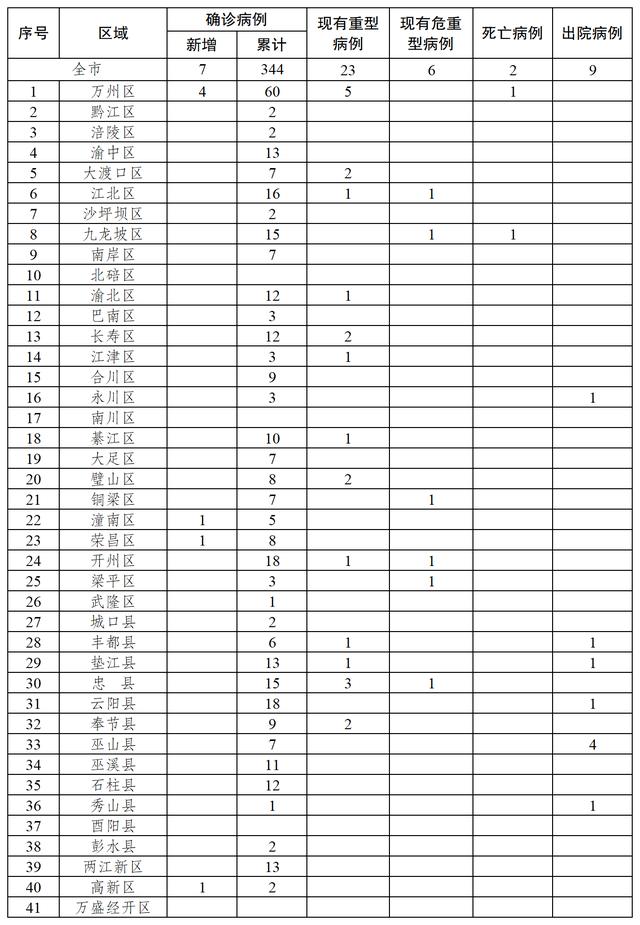 2020年2月4日0—12時,重慶市報告新型冠狀病毒感染的肺炎新增確診病例7例。新增確診病例中,萬州區4例……
