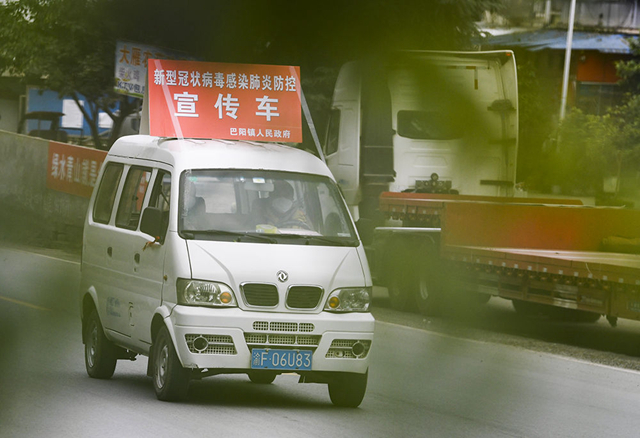 2月4日,通過車載廣播進行疫情防控宣傳的車輛經過重慶市云陽縣人和街道。 新華社記者王全超攝