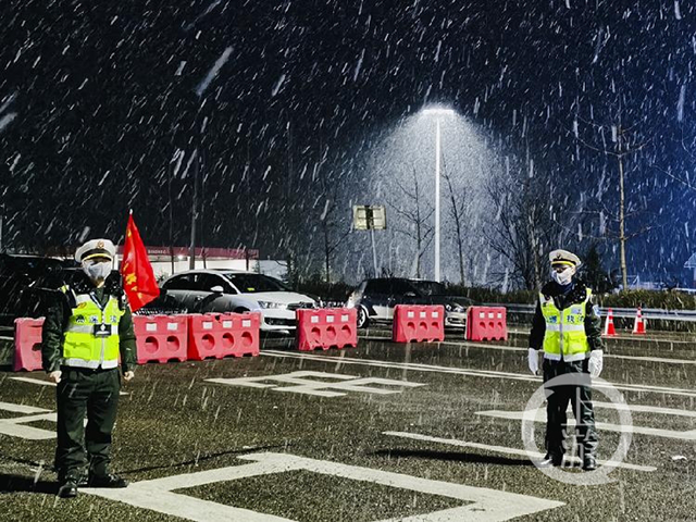 高速執法隊員們在雪中連夜值守是常事。