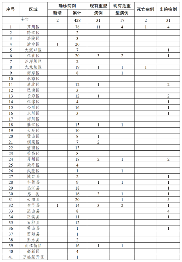 2020年2月8日0—12時,重慶市報告新型冠狀病毒感染的肺炎新增確診病例2例。