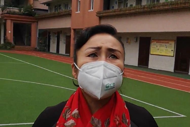“首先,進(jìn)行升旗儀式,請(qǐng)全體肅立,奏唱國(guó)歌!”……伴隨著國(guó)歌聲,視頻里站在國(guó)旗下戴著口罩的校長(zhǎng)張吉惠淚目了。