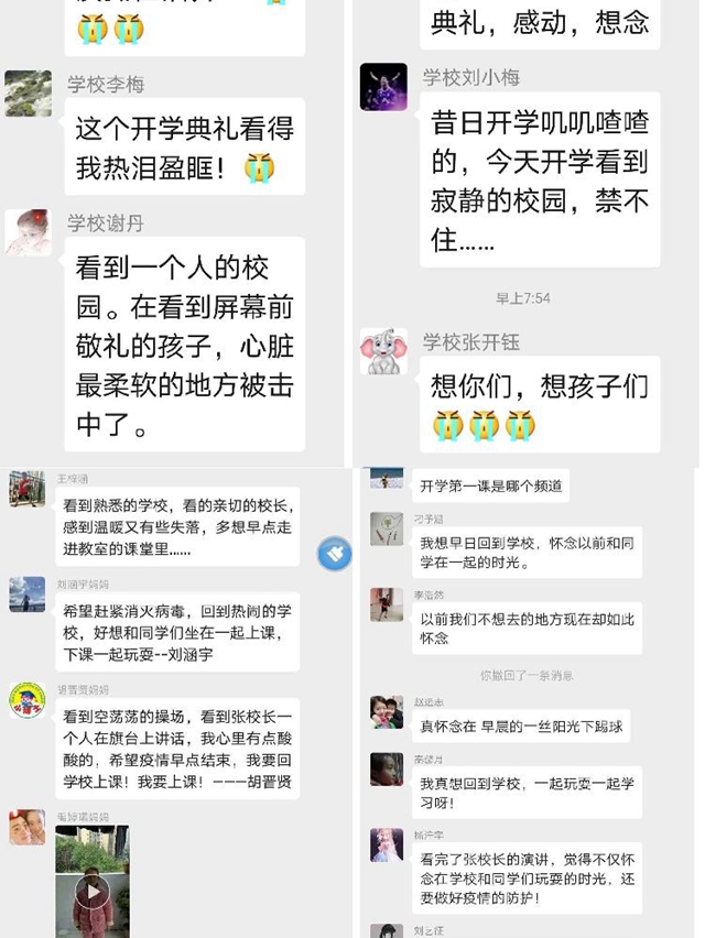 “看到空蕩蕩的操場(chǎng),看到張校長(zhǎng)一個(gè)人在旗臺(tái)上講話,我心里酸酸的,希望疫情早點(diǎn)結(jié)束,我要回學(xué)校上課!”同學(xué)胡晉賢通過媽媽的手機(jī)留言道。許多老師和家長(zhǎng)也紛紛留言:這場(chǎng)升旗儀式看得我熱淚盈眶。