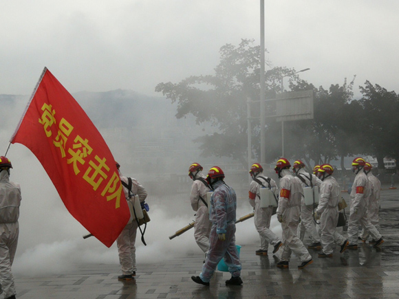 為了充分發(fā)揮黨組織的戰(zhàn)斗堡壘和黨員干部先鋒模范作用,統(tǒng)籌組織各支救援力量共同戰(zhàn)“疫”,萬(wàn)州區(qū)應(yīng)急消殺突擊隊(duì)成立了臨時(shí)黨支部。