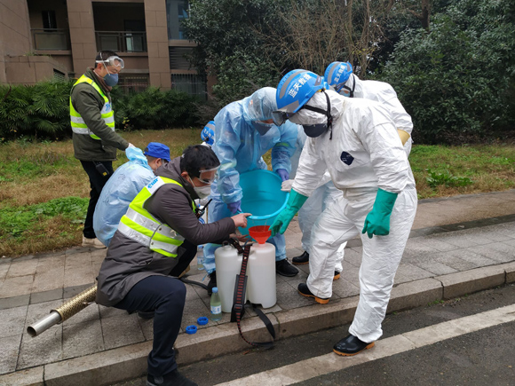 萬(wàn)州區(qū)應(yīng)急消殺突擊隊(duì)在進(jìn)行消殺。市應(yīng)急管理局供圖 華龍網(wǎng)發(fā)