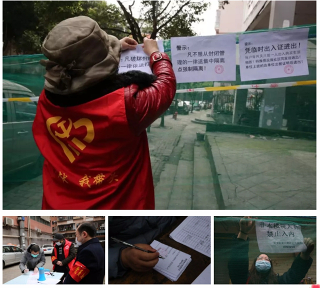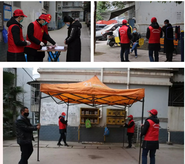 一瞬間,一個個紅色的身影如衛兵般駐守在全縣各大小區、樓棟、居民庭院。一張桌子,一把椅子,一份宣傳登記資料,在黨旗的襯映下,共同組成了一個個微型防控據點。盤問過往車輛、登記出入行人,量體溫、做宣傳、搞巡邏,黨員志愿者們充分發揮先鋒模范作用,帶領社區志愿者嚴格把關、敢于逗硬,用黨性筑牢一道又一道堅實的樓院防線,確保了居家防護(隔離)更有力、更有效。