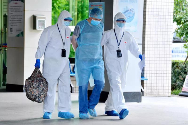 ▲2月15日下午,海南省東方市新冠肺炎確診患者張某智在海南省傳染病醫院治愈出院,因涉嫌以危險方法危害公共安全罪被東方市公安局依法采取強制措施。(海南省傳染病醫院供圖)