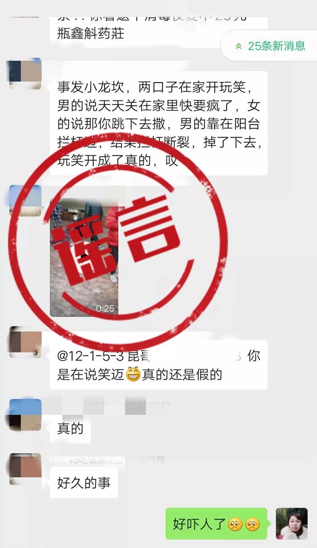 謠言2:沙坪壩一男子因陽臺欄桿斷裂墜亡