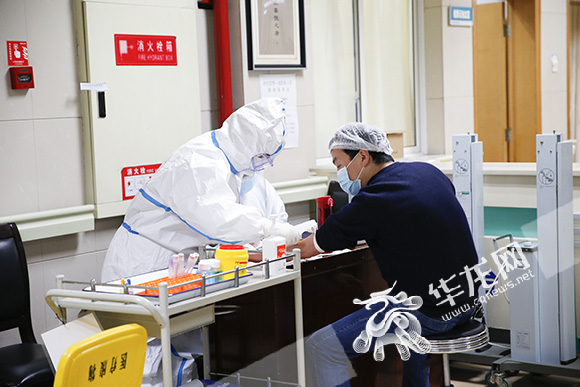 鄧某為獻血漿做準備。華龍網-新重慶客戶端 記者 李文科 攝