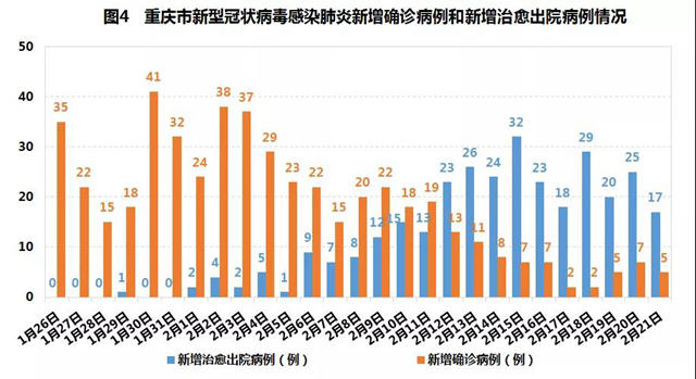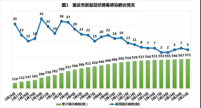 夏沛介紹,2月21日0-24時(shí),重慶報(bào)告新冠肺炎新增確診病例5例,新增治愈出院病例17例。截至2月21日24時(shí),重慶現(xiàn)有在院確診病例250例,累計(jì)死亡病例6例,累計(jì)治愈出院病例316例,累計(jì)報(bào)告確診病例572例。確診病例較多的區(qū)縣分別是萬州區(qū)118例、江北區(qū)28例、云陽縣25例,北碚區(qū)、南川區(qū)尚未有病例。