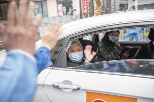 ▲2月21日,武漢市第一醫(yī)院門診門口,年齡最大的80歲黃婆婆,臨行前告別。重報集團武漢報道組 謝智強 攝