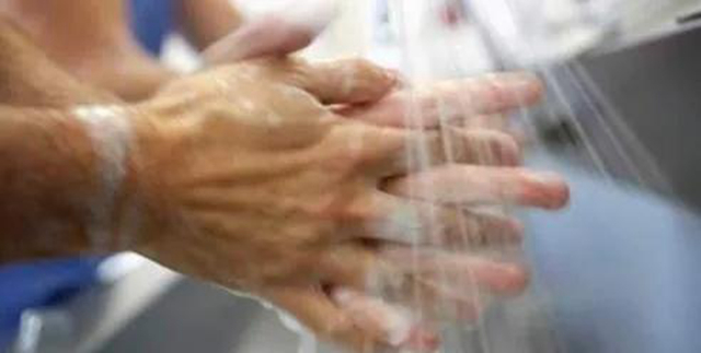 ④ 洗手。處理完口罩、衣物,用流動水加肥皂洗手、揉搓至少15秒。