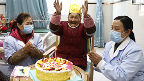 “太驚喜也太意外!沒有想到這個時候還能在這里過生日吃蛋糕,謝謝大家!”老人擦擦眼淚開心地笑了。對著生日蛋糕,她許下心愿后說:“我的心愿是祝愿全院所有人身體健康,國家能夠早日打贏這場沒有硝煙的戰爭,大家都早日和家人團聚。武漢加油!中國必勝!”