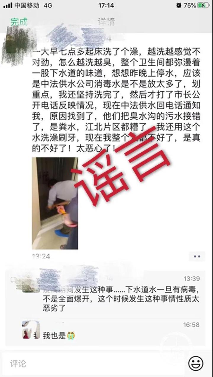4月27日,一則關于江北區供水異常的截圖在微信朋友圈里流傳。截圖中某居民稱,由于中法供水接水管道施工出現事故,將污水管道接成了糞水,影響了整個江北區 。