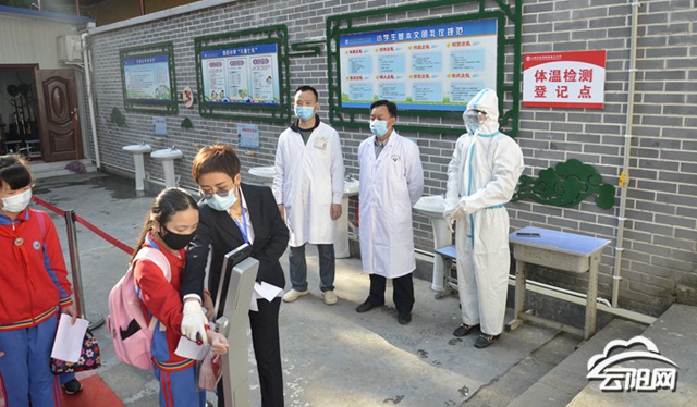 一大早,記者來到小學(xué)門口,看見學(xué)校負責(zé)人面帶微笑迎接著同學(xué)們的到來。據(jù)校長介紹,從家到教室,每位學(xué)生需經(jīng)過四個環(huán)節(jié):出門前家長要給孩子測量體溫并做好詳細記錄;復(fù)學(xué)三個年級從早上七點到八點半分三批次到校,值周老師再次復(fù)查體溫;到達教室前,班主任復(fù)查體溫,同時要求用消毒液消毒雙手以保證學(xué)生安全再進入教室。