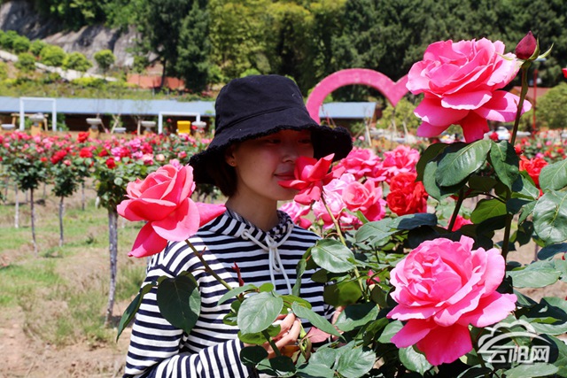 走進園內(nèi),映入眼簾的牡丹花,將那冠絕天下的芳容展現(xiàn)在人們面前,碩大的花朵各種各樣的顏色,深紅的、粉色的、白色的……各有各的特點,各有各的美麗,讓人眼花繚亂,花朵襯著青蔥的葉子,在絲絲縷縷的清香中細細觀賞,只覺滿眼生輝,怎么看也看不厭。此外,薔薇花一簇一簇地盛開著,像是一幅淡淡的水粉畫,陽光而又溫暖。游客徜徉在花海里,看著眼前的美景,聽著悅耳的音樂,遠離城市的車水馬龍,感受山間的幽靜恬淡。