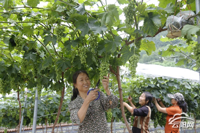 云陽網訊(記者 王彬彬 趙曉龍)6月22日,走進鳳鳴鎮馬軒村的多集合現代農業產業園,一個個標準化的種植大棚整齊劃一,一串串晶瑩剔透的葡萄掛滿葡萄架,工人們正忙著剪枝梳葉、清理壞果、摘套袋等。
