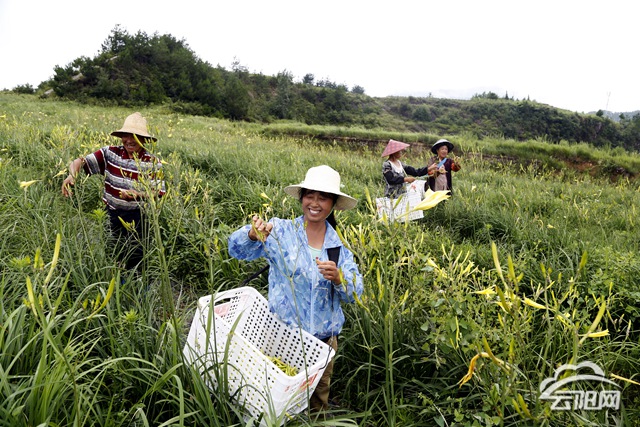 進入豐收期的700畝黃花,已經是蓬勃抽薹。一花七蕊、色澤金黃、角長肉厚的黃花菜迎來了為期40天的采摘期。