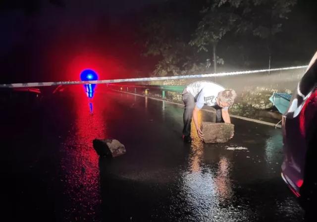 在暴雨中巡邏排險、疏導交通、清理路障
