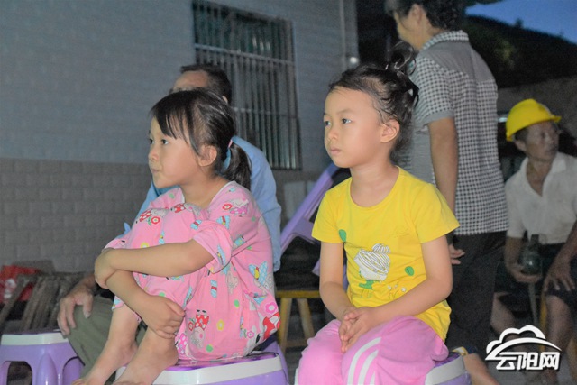 這里大多數都是老人、婦女、兒童,他們早早吃過晚飯后,端著凳子,拿著扇子,耐心地等待著電影放映的那一刻。
