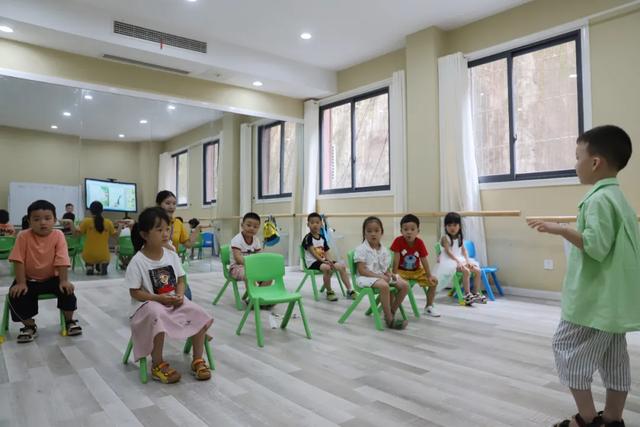 輔導老師手把手地糾正著小朋友的形體站姿
