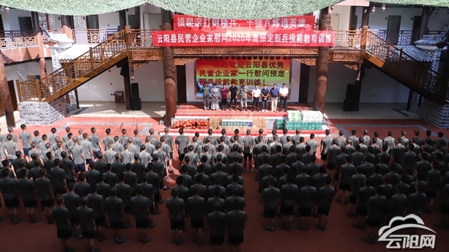 當天,重慶春冬實業(yè)有限公司、云陽縣雅源餐飲文化有限公司、君晟商貿有限公司、林峰農業(yè)開發(fā)有限公司、貴華港口裝卸運輸有限責任公司等民營企業(yè)家來到訓練現場,看望預定新兵,為他們送去蔈草牛肉干、牛奶、礦泉水等慰問品,希望預定新兵不忘初心,刻苦訓練,提高軍事素質,打牢身體基礎,提高適應能力,勇敢踏上人生新征程,成為祖國需要的人才,為家鄉(xiāng)人民爭光添彩。