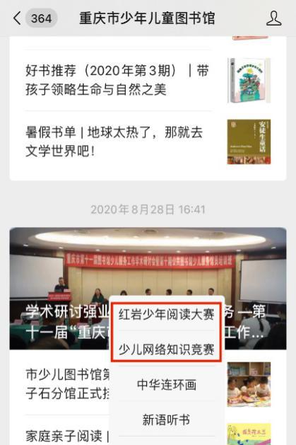關(guān)注“重慶市少年兒童圖書館”微信公眾號(hào),點(diǎn)擊“活動(dòng)”——“紅巖少年閱讀大賽”