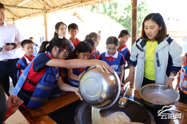 研學基地“豆子的秘密”研學項目引起孩子們的濃厚興趣。“我煮的豆?jié){真香啊!”小朋友們圍著爐罩,眼睛緊緊盯著鍋中升騰的熱氣,排著長隊耐心等待豆?jié){出鍋。“手工豆花、豆腐真好吃!”在帶隊老師幫助下,小朋友們切身體驗到了從磨黃豆、濾豆渣、煮豆?jié){、點豆花,最后制成白白嫩嫩豆腐的全過程,也感受到了勞動的甘甜與艱辛。