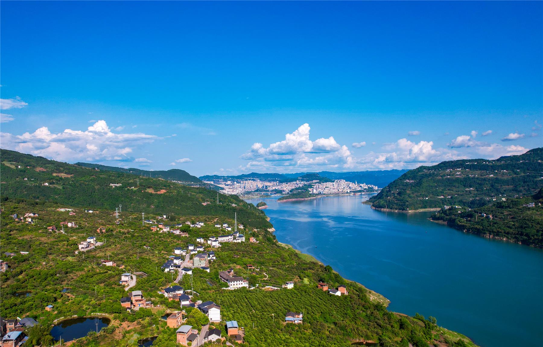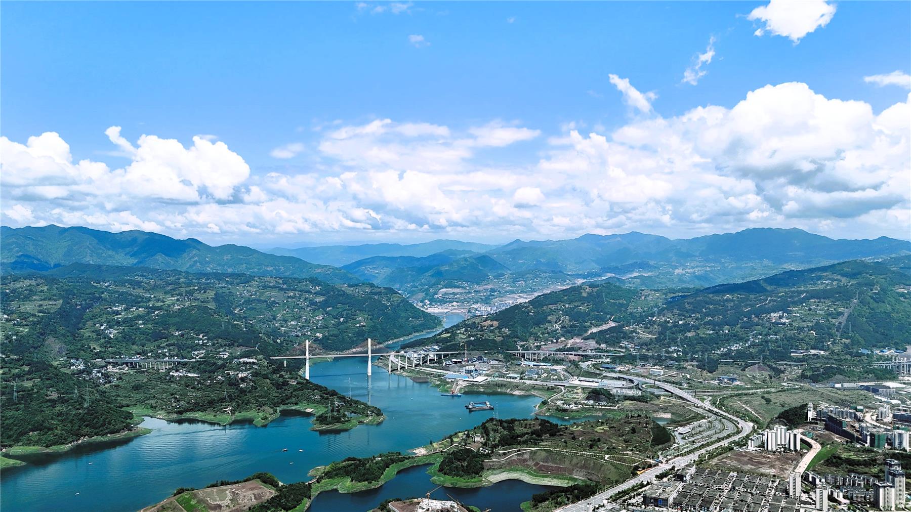 在云陽環湖綠道,從空中俯瞰,一江四河,山清水秀。雨后的天空一片蔚藍,朵朵白云隨風流動,為天空增添了幾分靈動。江水清澈如鏡,山色青翠欲滴,藍天、白云、碧水、青山共同繪就一幅秀美生態畫卷,而在云陽人和街道曬經村,千畝柑橘林扮靚長江江岸,來往船舶穿行于江面,藍天白云下,汽車沿山路行駛,掠過一棟棟青瓦白墻的民房,與一江碧水、兩岸青山交相輝映,一幅詩意景象躍然眼前。“雨過天晴以后,天空非常潔凈,藍天白云,拍照很出片。”市民王小艷說。