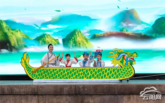 活動伊始,主持人巧妙地運用模仿話術(shù),以生動的語言描繪了端午節(jié)的起源、習俗和意義,使現(xiàn)場觀眾仿佛穿越到了古代的端午節(jié)慶典現(xiàn)場。文藝匯演在一場情景劇《端午知多少》中拉開序幕,舞蹈《風之馬》、獨唱《中國人》、健身《八段錦》、歌伴舞《山水云陽情》等形式多樣的文藝節(jié)目輪番上陣。舞臺上演員們表演形式生動、接地氣,用歌聲、舞姿感嘆美好生活,舞臺下各族群眾鼓掌、喝彩,并拿出手機記錄著精彩的瞬間。