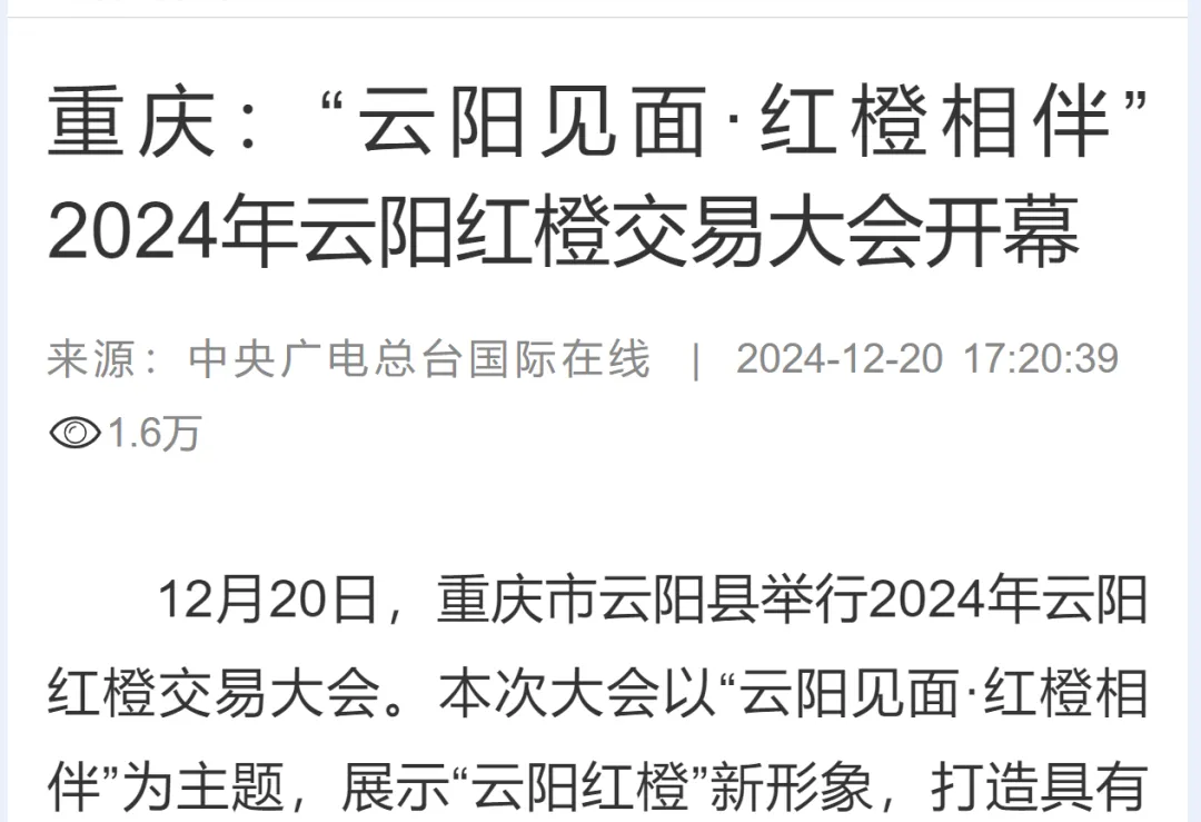 云陽紅橙的品牌美譽度和影響力