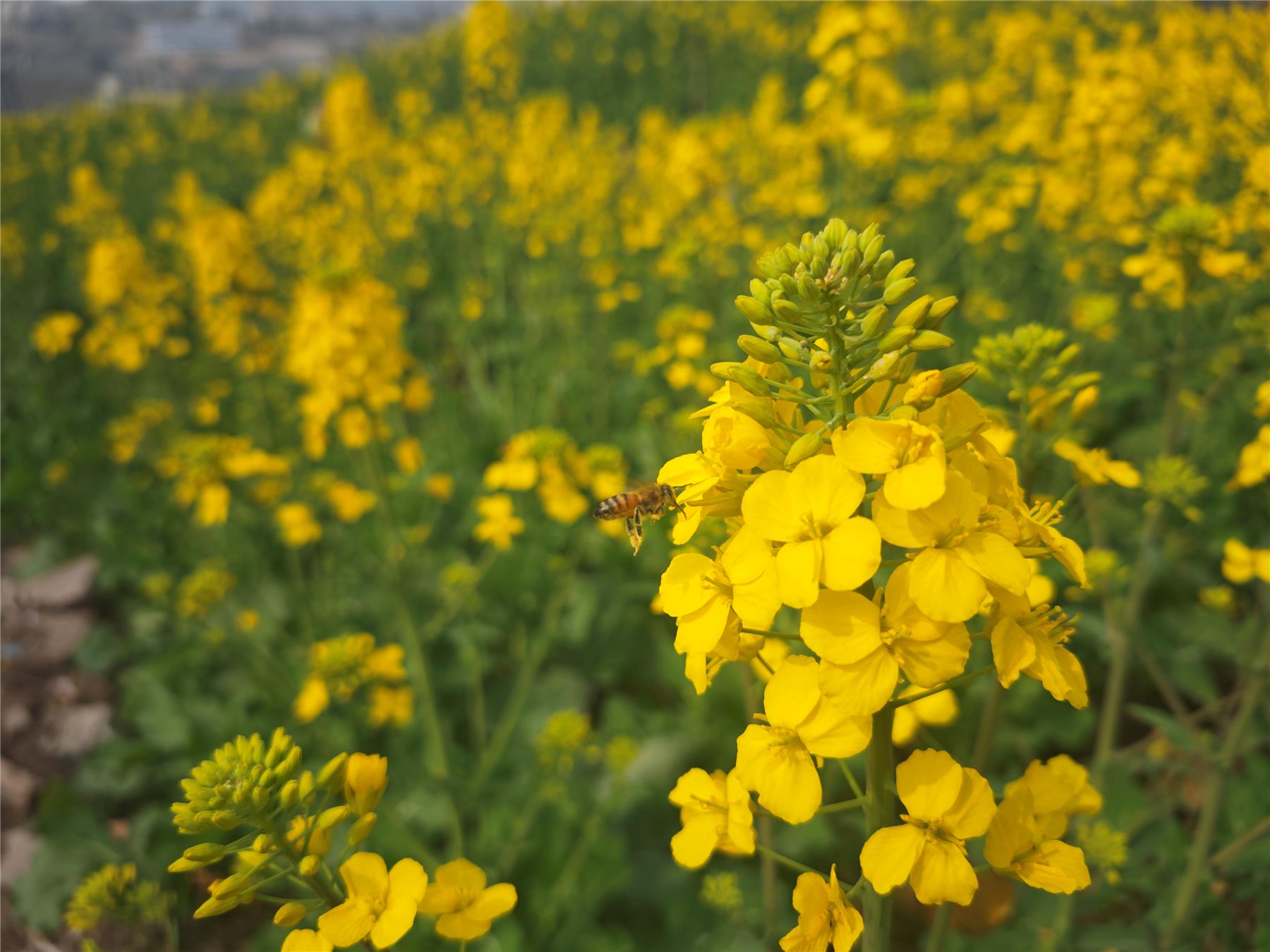 除了環湖綠道,青龍街道紫金大道道路兩旁的油菜花也競相開放,遠遠望去,金黃的油菜花與遠處的建筑相互映襯,將道路裝扮得格外靚麗,成為春日里一道亮麗的風景線。