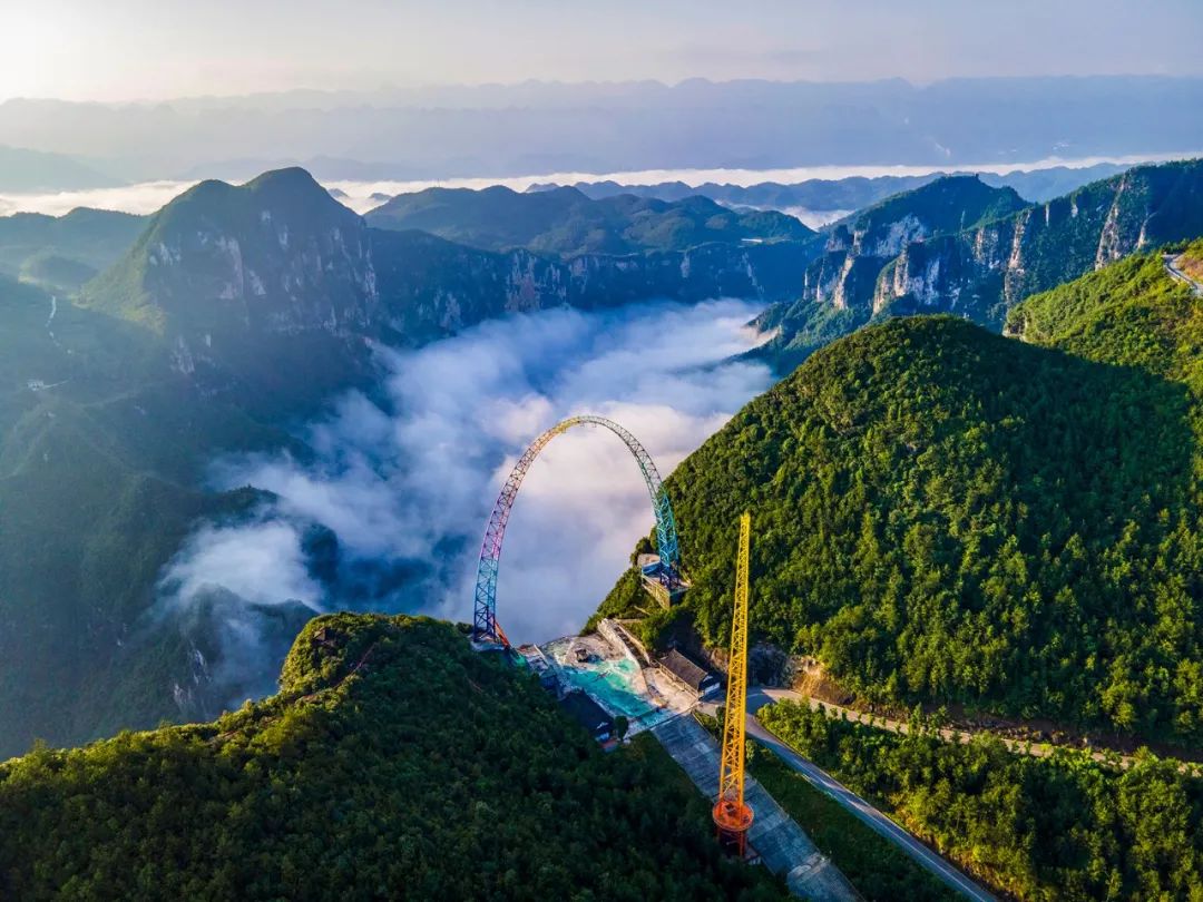 云端廊橋垂直落差720多米,懸挑長度26.26米,是世界第一懸挑玻璃廊橋。
