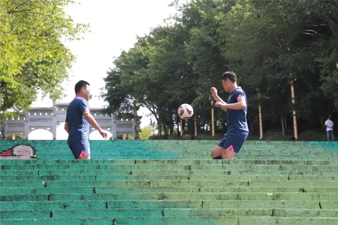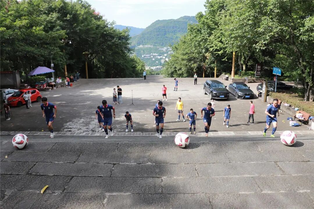云陽登云梯位于云陽縣城中央,是世界最長的城市人字梯,還載入了吉尼斯紀錄。登云梯以其獨特造型、宏大規模被譽為“萬里長江第一梯”,梯道長1450米,寬30米,垂直高差達300多米,梯步1999步。主題訓練日選擇在這里訓練,不僅鍛煉球員耐力和體力,更是讓球員們體會到奔跑在人字梯上,心跳與腳步同頻,汗水與豪情共灑。這不是與別人的競賽,這是與自己的對話,更是一場與重力抗衡的榮耀之戰!