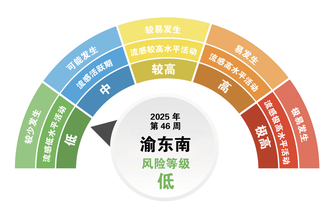 11月12日,重慶市疾控中心聯合市氣象服務中心發布了“流感風險等級”,數據顯示,2025年第46周(11月10日-16日),全市流感風險等級為中等,這意味著發病水平升高,進入流感活躍期。