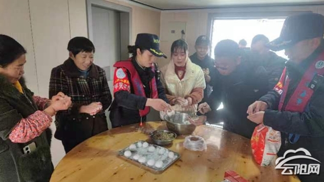 2月9日,云陽海事處組織曲堆子停泊區值班留守船員齊聚“佳鴻919”輪一起包湯圓、貼春聯、慶新年。